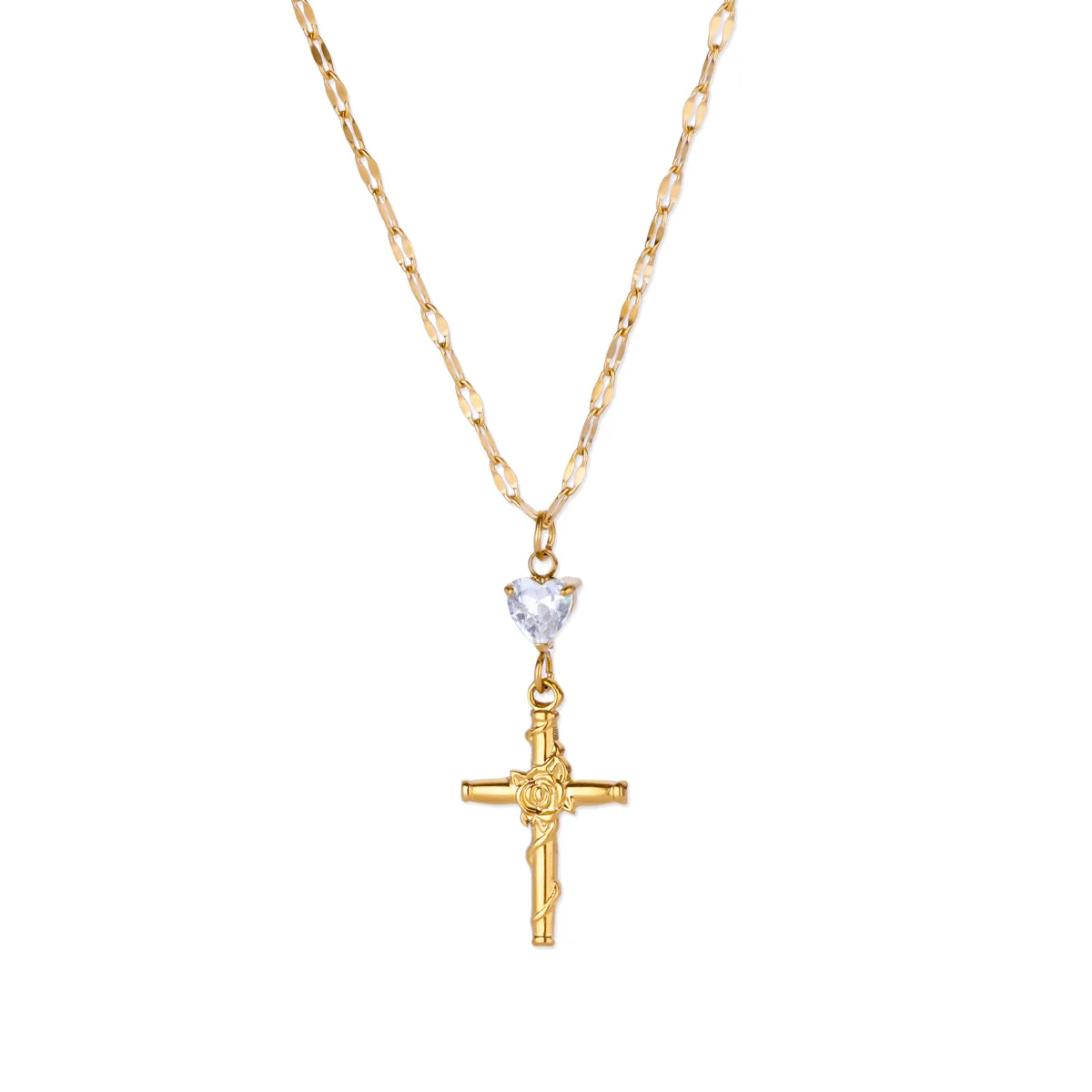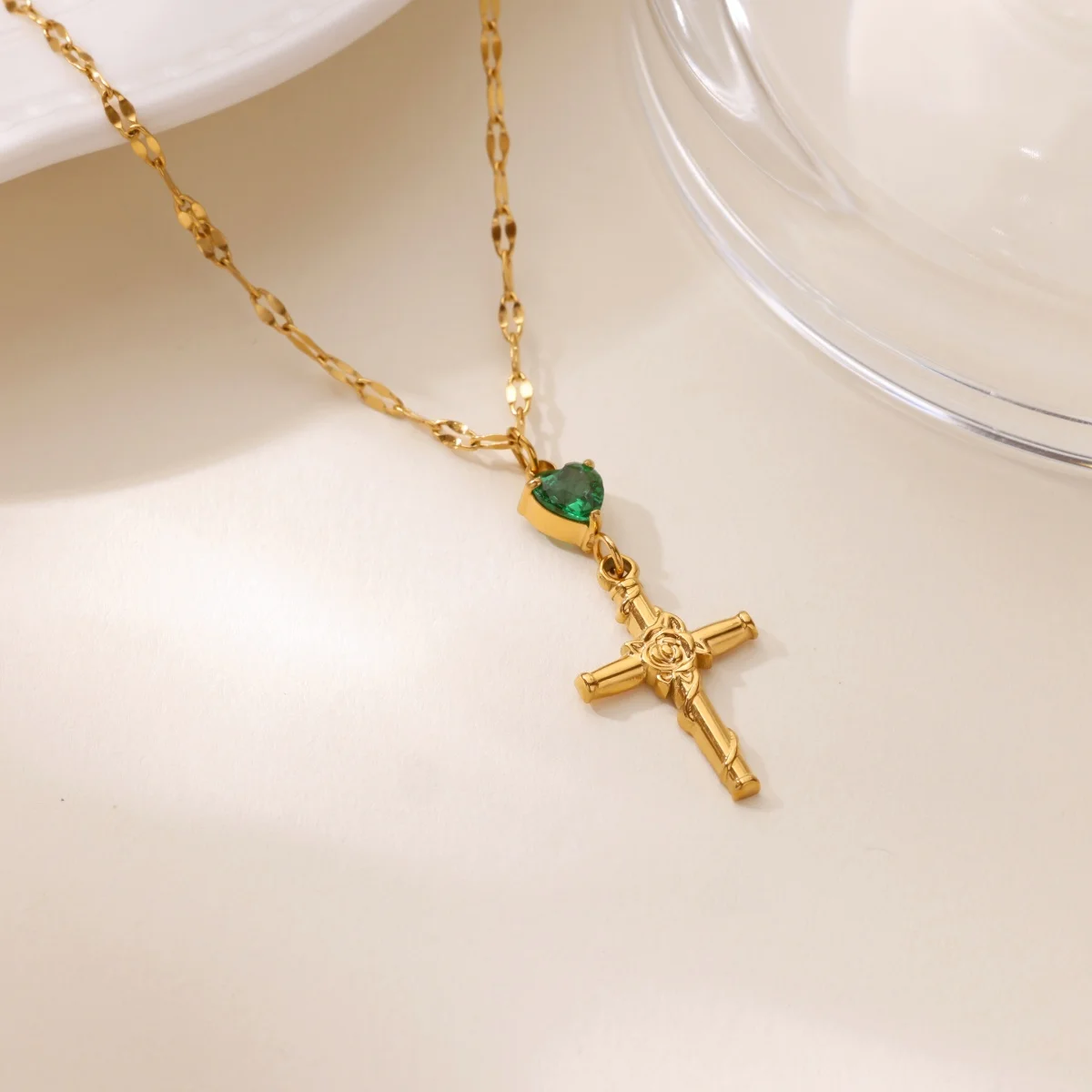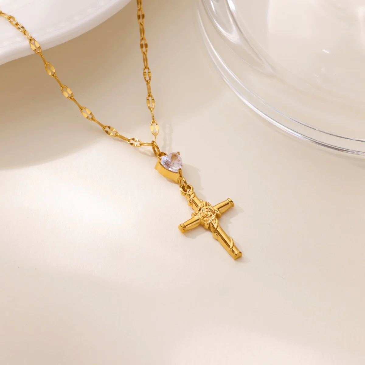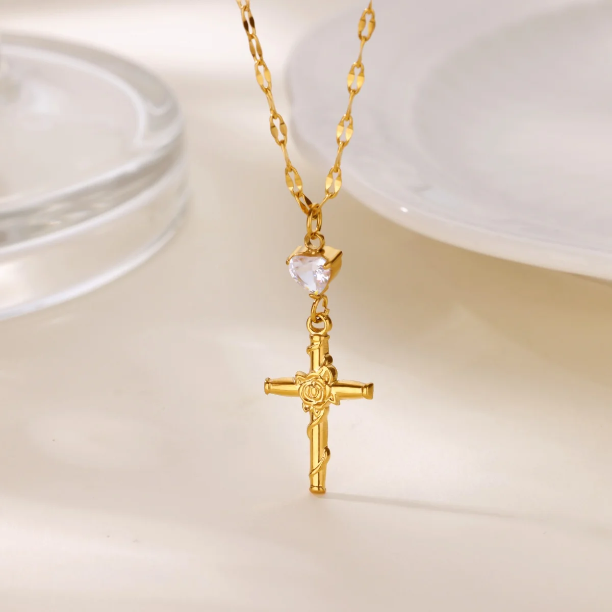 Round Rriangle Zircon Necklaces For Women Gold Color Stainless Steel Crystal Geometric Necklace Wedding Aesthetic Jewelry Gift